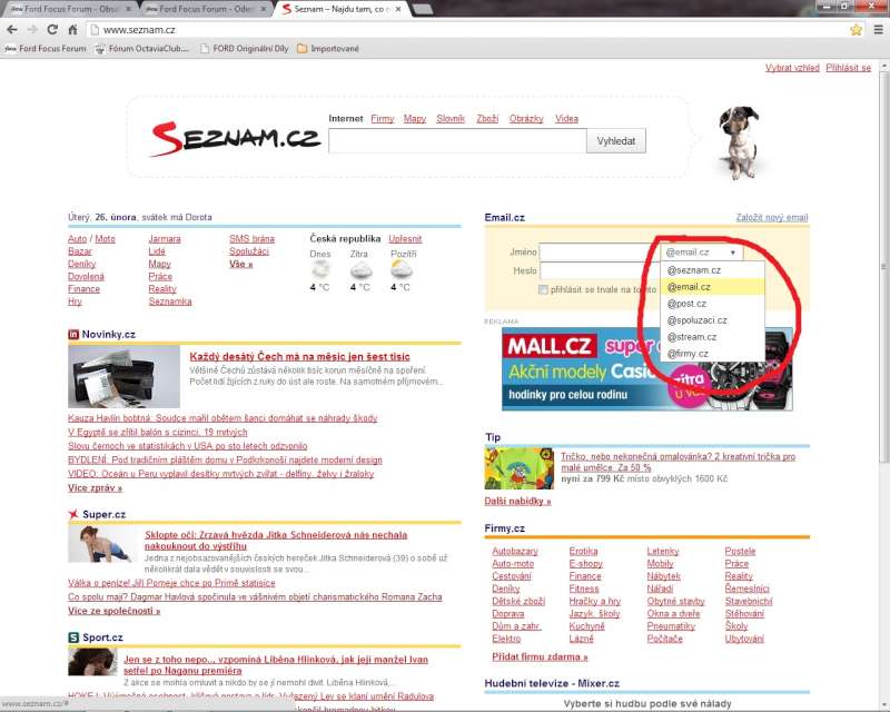 Když spustím internet a seznam.cz tak mi jako prioritní přípona naskakuje u mailu @EMAIL.CZ. Jde to někde změnit, aby prioritně naskakoval @SEZNAM.CZ?