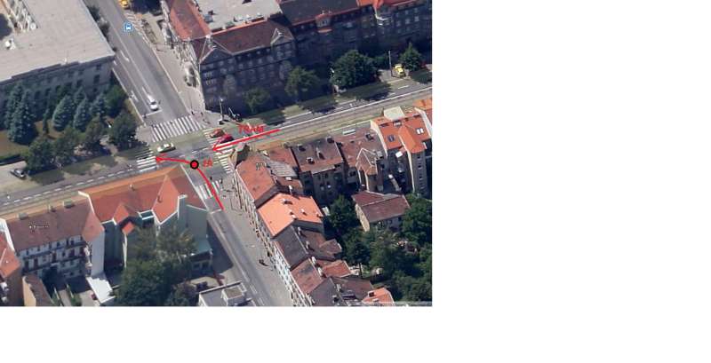 V nákresu teda není zakreslena autoškola, která byla ještě přede mnou. Jakmile jsme se oba rozjeli, tak mě ze zadu ťukla tramvaj.