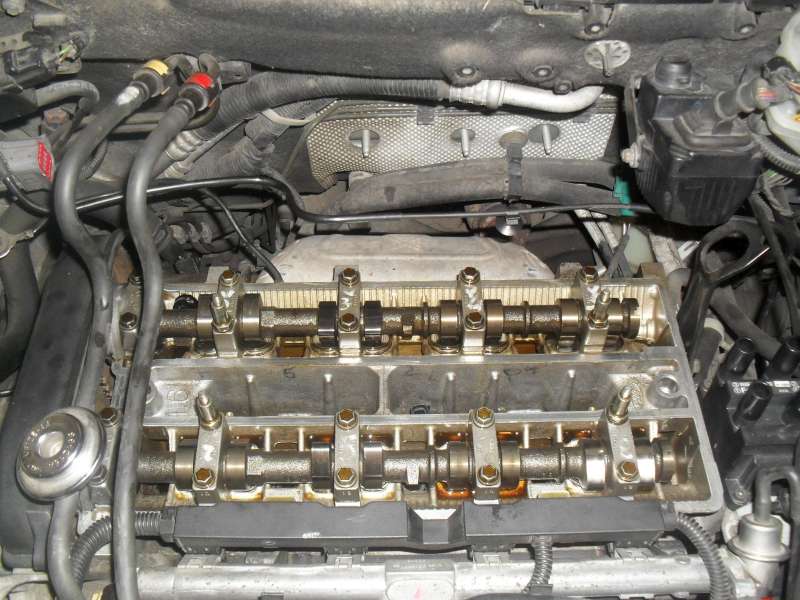 Dále bych tě poprosil o to, abys mi na následující fotce poradil, jak poznám ty hydroštely. A dále mi vysvětli, proč Ford nacpal pod vačky nějaké kusy plechu a navíc každý jinak tlustý.