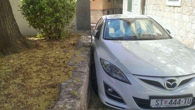 Jo a takhle se tam parkuje, palec do te mezery jsem nedal. Kdyby to byl krap, ale celkem nova Mazda6.