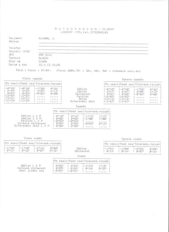 Tak dneska geometrie nic neviděl špatneho odklony kol taky dobré geometrie až na zadní kolo taky vše v pořádku... říkal že to mužou dělat ty pláště co tam jsou třeba...