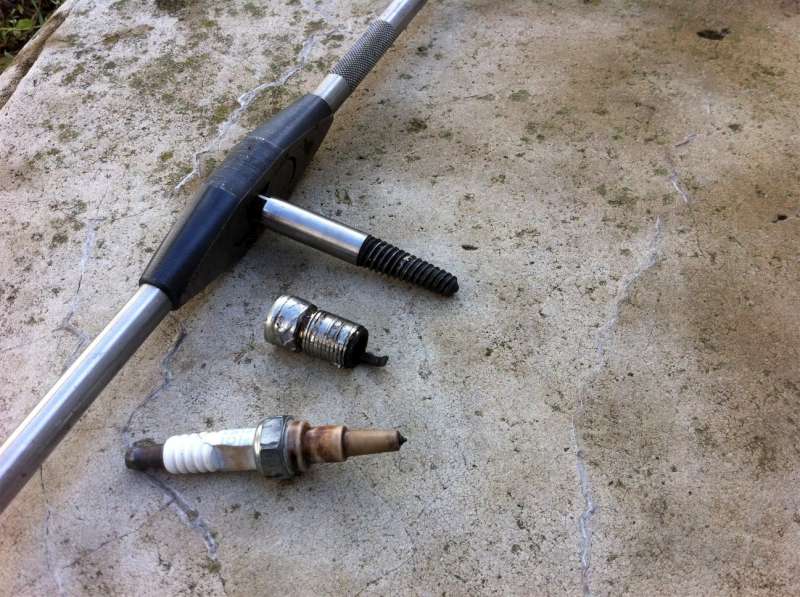 Tak se mě stala taková nemilá věc. Při vyndavání svíčky se utrhnul závit a svíčka je na dvě půlky, závit svíčky zůstal v bloku motoru. Nějakej poctivec to v AMB moc poctivě utáhnul, další svíčky jsem raději nechal bejt. To sem chtel udělat kontrolu před zimou.