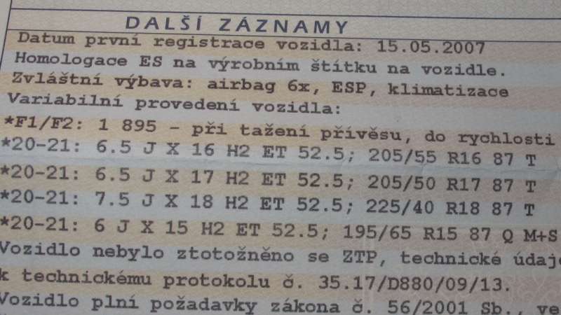 Ahoj, prosím o radu s pneu podle údajů v TP.