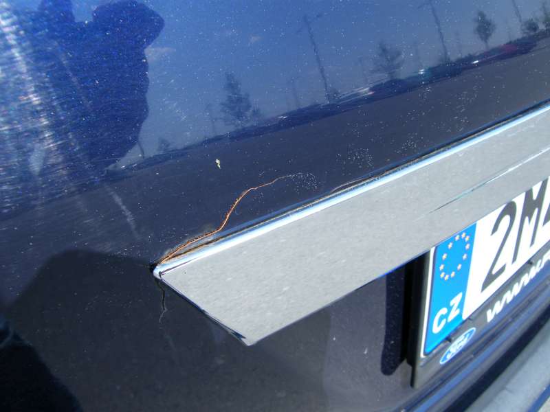 tak to je teda pořádný kus, já zatím tam má je takové 2 malé puchýřky, ale už to trochu barví lištu na zrzavo. Spíš mám větší problém se spodním lémem, ten je horší.