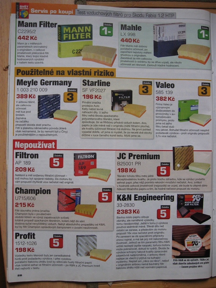 V SM udělali před časem test vzduchových filtrů. Kdo překousne, že se testovaly filtry na Fabii, tak se dozví jaký že "skvělý" ty bavlněný filtry vlastně jsou.....