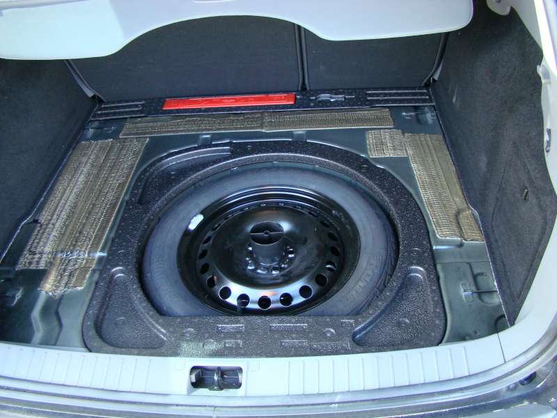 Navrchu v pohode zostal aj ten polystyrén, aj keď vo Ford servise mi tvrdili, že ho budem musieť vyhodiť. Pod kolesom je ten polystyrén, kde je uložený hever, kľúč na koleso a podobne. Akurát som musel kúpiť novú príchytnú skrutku, lebo tá z dojazdovky bola krátka.