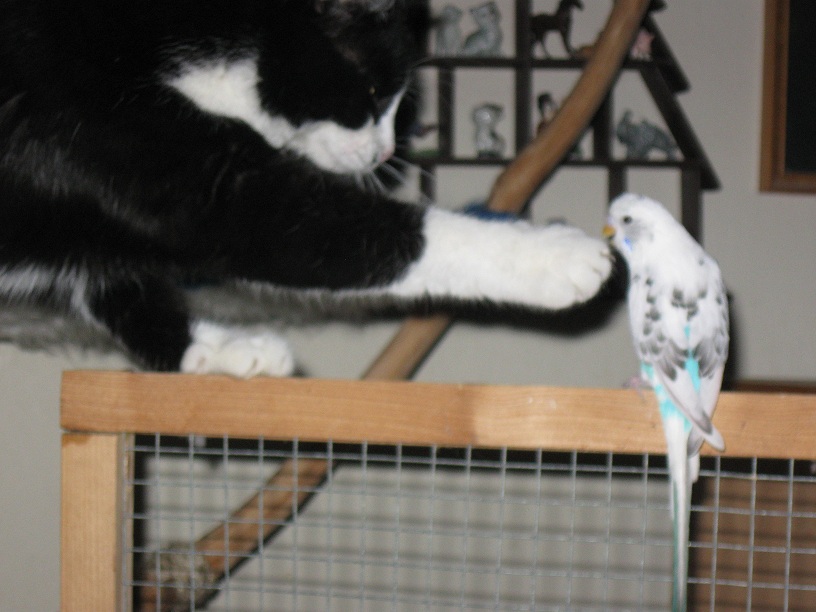 Tak dnes mama dovezla dalšího kocoura aby se Tomula nenudil. Napřed měl kamaráda Kubu (andulku) s kterým si docela rozuměl, nechal se hladit (mozna bych nasel taky fotku), ale to pako s křídlama potom frnklo otevřenym oknem ven