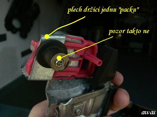 - Jestli budete dávat šroubek na ten pahýl ( si o to přímo říká) v mém případě škrtá o výztuhu dveří sice jen nepatrně,ale přeci.(volte co nejnižší a bez podložky to by mělo stačit.)Vyndávat stahovačku znovu se mi,ale nechce,na funkci nemá vliv jen v jednom místě lehce škrtne.Pozor,ale kdyby byl vyšší už by se mohl zachytit o hranu výztuhy.Jde o levou stranu.