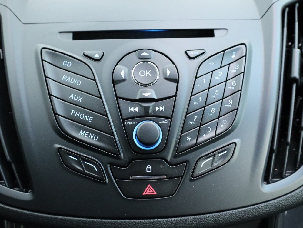 Na zadních dveřích je nad SPZ oko couvací kamery s ledkami po stranách, ale kamera se na displeji po zařazení zpátečky neukazuje. Rádio je bez navigace, nejspíš SYNC 1. Auto má pípáky a automatického parkovacího asistenta - obojí funguje bez problému. Nevím, zda v této konfiguraci vůbec může couvací kamera fungovat a proč na těch dveřích je.
