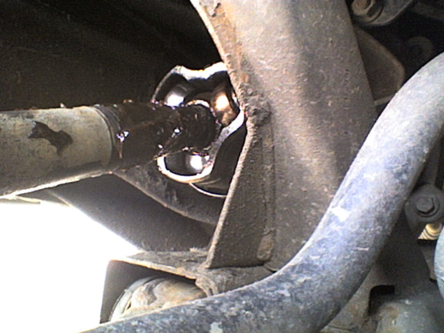 Možná budu za "blběčka" (v autech se moc nevyznam) ale mohl by mi někdo upřesnit kde a kčemu je v autě poloosa?Dneska jsem měl auto nahoře a když jsem koukal jak jsou sjety destičky všiml sem si vyteklýho maziva u kloubu hnacího hřídele. viz foto. Mohlo by to mít neco společného stěmi vybracemi ?