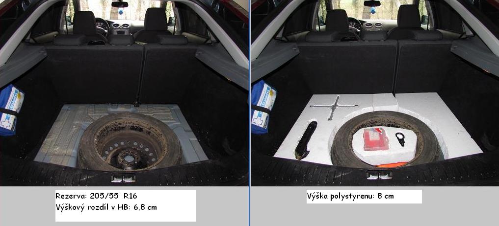 Gromik píše:Mohlo by to být tím ... jinak se tam opravdu plnohodnotná nevejde, já tam mám takové černé polystyreny z vyroby, jsou to vlastně také přihrády na haraburdí, což se taky hodí... nevýhodou je, že to dost sníží objem (přesněji výšku) kufru.