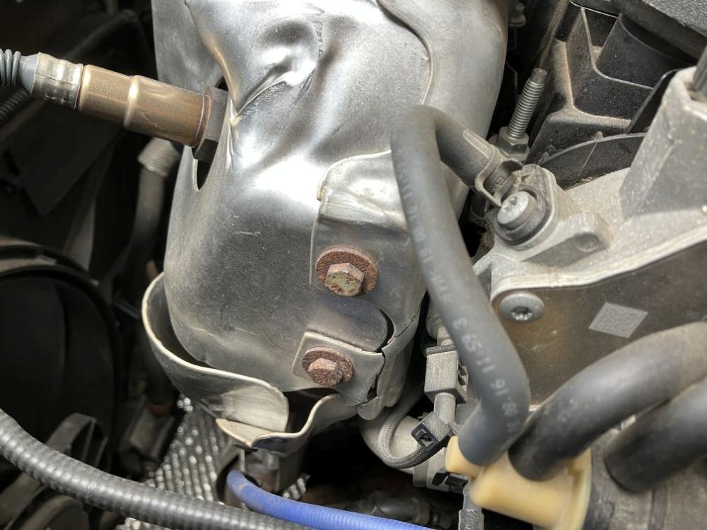 Těsnění mezi kat, turbo a výfuk, takže dvě těsnění. Na parkovišti to nedáš, musíš mít rampu, kat se vytahuje spodkem. Já měnil kat 3 odpoledne, jen dva dny jsem řešil zrezlé šrouby na výfuku, musel jsem je odvrtat. Ale některým to šlo dobře. Lepší bude ten plech nějak spojit, ale nevím zdali tam máš na to místo.