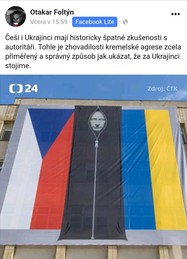 je to zpusob protestu, ktery bych necekal na statni budove ... a se statnim svatkem bych to nespojoval ... a kdybych to sem daval, tak bych k tomu napsal nazor ohledne provedeni a ne "Myslel jsem, že to je NÁŠ státní svátek." ... protoze touto Tvoji vetou neresis vlajku s Putinem, ale vlajku UA ... takze se ted netvar ublizene, ze Te nechapumiki21 píše: 29.10.2022 15:28 Ano, takže i dle tebe ta vlajka s Putinem v pytli patří ke svátku naší státnosti a nepovažuješ ji za nevkusnou.![]()