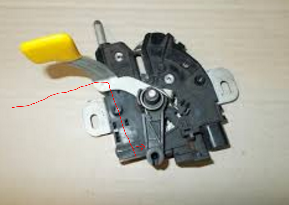 V červeným kroužku na obrázku je ta pružina, co vrací páčku, se kterou hýbe lanko. Na druhým konci (dole) té páčky je uchyceno lanko. Této páčce je třeba pomoct doprava, když zůstane viset zámek a nejde zacvaknout kapota!![]()
