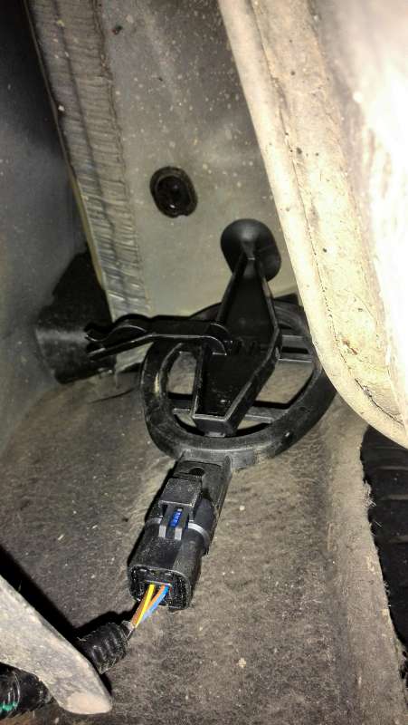 Tak předek zapojen. Opravdu staci sundat přední světla a tam se najde konektor přichycený ve žluté zaslepce ke karoserii. Pak už jen na vnitřní straně plastového podběhu najdete místo určené k uchycení antén. Jsou tam tvá výstupky pro šrouby. Přístup od světel není nejlepší ale při trochu trpělivosti tam ten šroub zašroubujete.