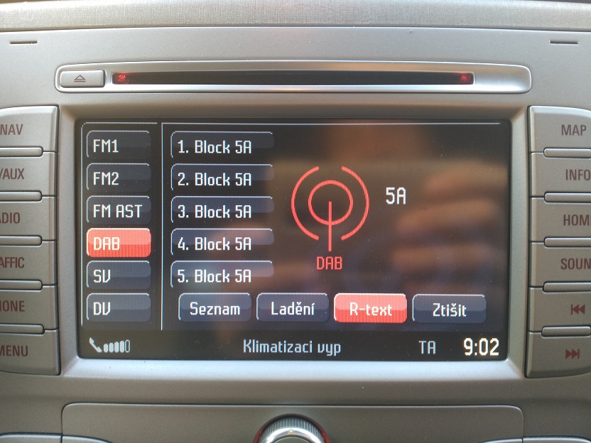 Je potřeba doplnit DAB modul, který je vlastně samostatné rádio a je připojený přes audio vstup do NX rádia (stejně jako cd changer) a NX ho ovládá přes CAN sběrnici. výsledek potom vypadá nějak takhle: původně je na displeji tohle: