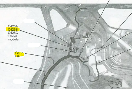 1x napájení na konektor u levé nohy řidiče - C133 - pin 34 - hnědo-žlutá 1x GND pro levý modul - kostřící bod je vzadu v kufru 2x GND pro pravý modul - kostřící body jsou hlouběji v kufru až za modulem tažného.