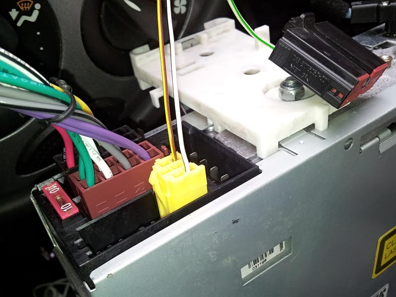 Takhle zapojene radio slo zapnout i pri vypnutem zapalovani, bylo bez problemu mozne radio ovladat ovladacem pod volantem (to je ten zluty konektor), radio reagovalo na zapnuta a vypnuta svetla (pokud bylo v menu nastaveno). Jedine, co jsem nemel zapojene, byla regulace hlasitosti podle rychlosti auta, to je hadam ten konektor s jedinym zelenenym kabelem.