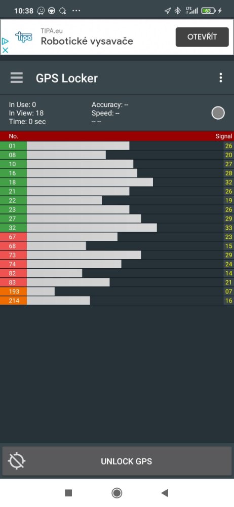 Vylez na volné prostranství, zapni gps locker, stáhni nova agps data a po fixu udělej screen a nahraj sem. Hned budem vědět, zda máš stejný problém s anténou, jako jsem popisoval...