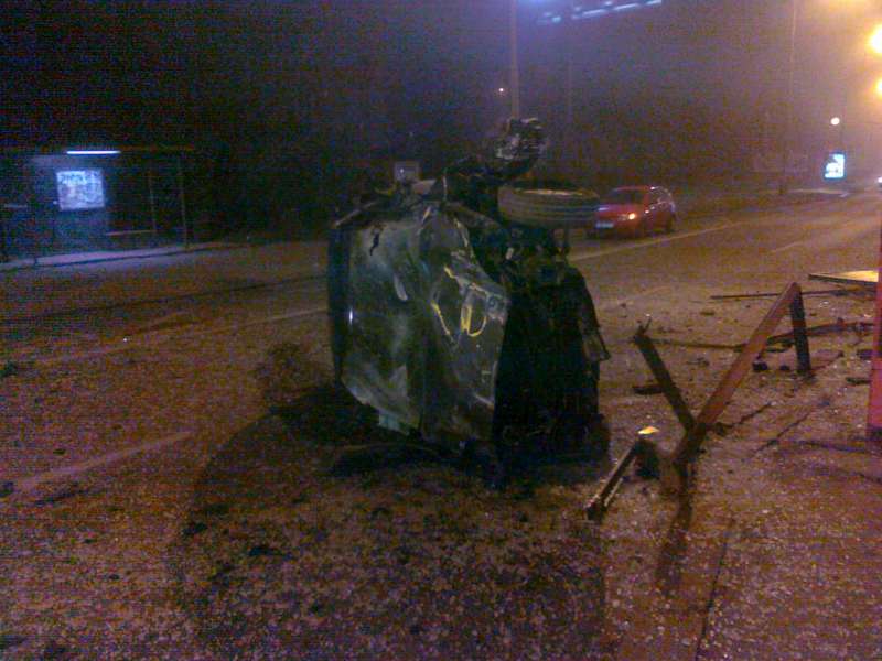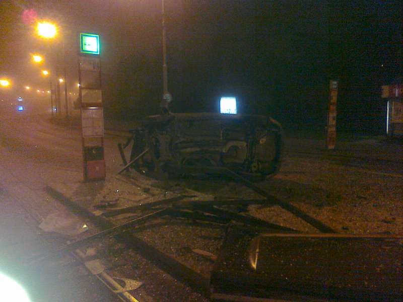 auto jelo rychlostí 185 km a měl štígro, že na tramvajové zastávce nikdo nestál, protože jí 1/2 zrušil, jo a čumák to už nemělo a motor na sra**y stejně jako zbytek auta