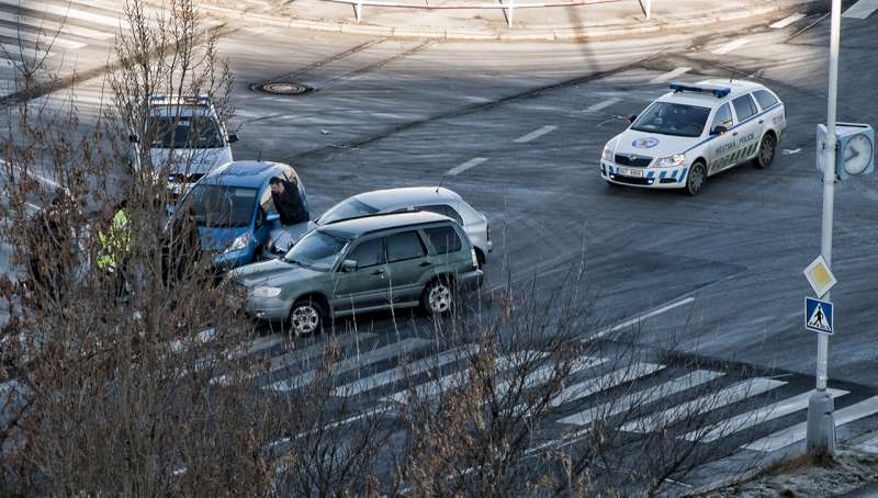 Nehoda modrého a stříbrného auta.Přijeli poliši a nehodu šetřili.Po chvilce přifrčel zelený a ještě jim do toho flákl.Koukal jsem na to z okna.