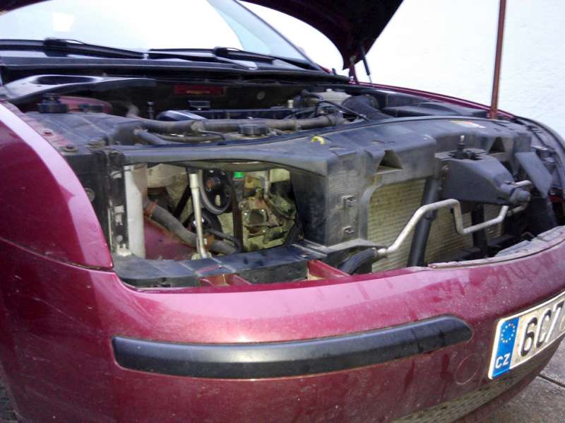 Před demontáží bylo třeba akorát vypustit chladící směs, výpustní šroub je u Mondea na chladiči vpravo vzadu, při pohledu ve směru jízdy - když ležíte pod autem