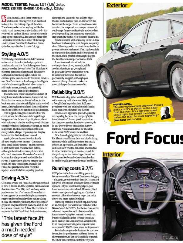 Focus - predek nazivo vypada lepe, nez na fotkach. Zkratil se ale LED pasek denniho sviceni ve svetlech, uz to nevypada tak "nabrousene". Z boku je to prakticky stejne, vzadu jen mensi svetla, jinak taky tak nejak stejne. Uvnitr uz je to lepsi. Trochu jina sedadla - prisla mi sirsi, nez mam ja, takze bych v nich asi i pres slusne bocni vedeni pomerne lital, pri me postave. Volant dobry, tlacitka jsou lepe dosazitelna. Budiky stejne, jak mam ja, jen se na barevnem PP zmenila grafika (stejna, jakou maji v USA pred FL) a pribyl druhy trip computer. Stredova konzola je prekopana. Madlo brzdy se presunulo vzad na standardni pozici, to vidim jako minus (zvykl jsem si na to predsunute), zmensila se schranka v loketni operce. Drzaky na piti jsou kryte roletkou, jako treba v Mondeu. Kolem radici paky jsou tlacitka na zapnuti ohrevu volantu, automatickeho parkovani atd. Panel klimy je jiny a pripada mi mene prehledny, nez dosud, ale to je asi jen zvyk (2 generace Focusu se soucasnym resenim:). Auto melo dotykovou 8" obrazovku - prijde mi to zbytecne - ano vypada to lepe, navigace na tom bude urcite prehlednejsi, ale obrazovka je celkem daleko a utopena v pristrojovce. Nevim proc bych mel ovladat klimu pres toto rozhrani, kdyz par cm pod tim je k tomu urceny hw panel. Asi bych se klidne spokojil se zakladnim (pro Titanium) 4" LCD, jako mam ted a poradnymi tlacitky pod tim. Mimochodem tento 8" system meli v USA uz pred FL - takze je to vlastne takove vylepseni-nevylepseni, Ford to nic moc nestalo