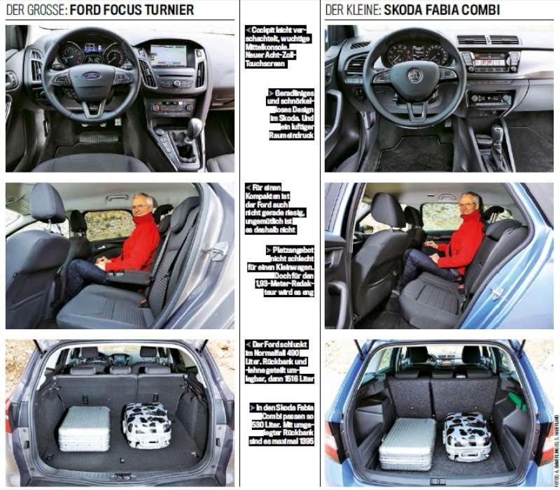 Fabia má kufr hlubší a výš plato. A litry se počítají právě po plato - takže je to jasný... U Focusu mi vyhovuje podlaha kufru v rovině s hranou (na nasouvání věcí je to paráda), ale někdy bych uvítal hlubší kufr..
