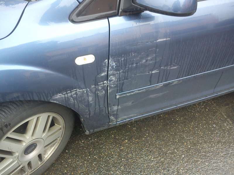 tak ja zatim dobre zpravy. dnes to byl fotit technik a blatnik navrhl na vymenu, dvere na opravu, lak vsude. nastesti mam spoluucast jen tisic kacek, k tomu prijdu o nejakou cast bonusu. snad me to nebude stat moc navic