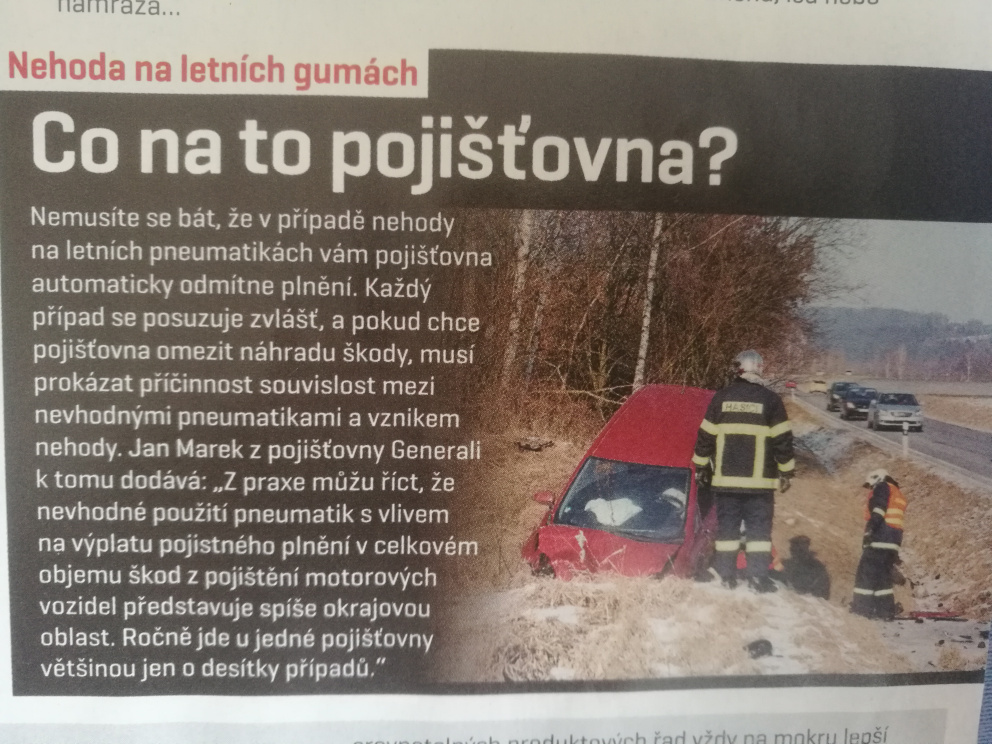 Nebo jsem resil znalecky posudek, protože pojišťovna zacla vymahat zpět pojistné plnění pro údajný pojistny podvid. Pneumatiky by byly to nejsnazsi, na co se to snažili uhrát.