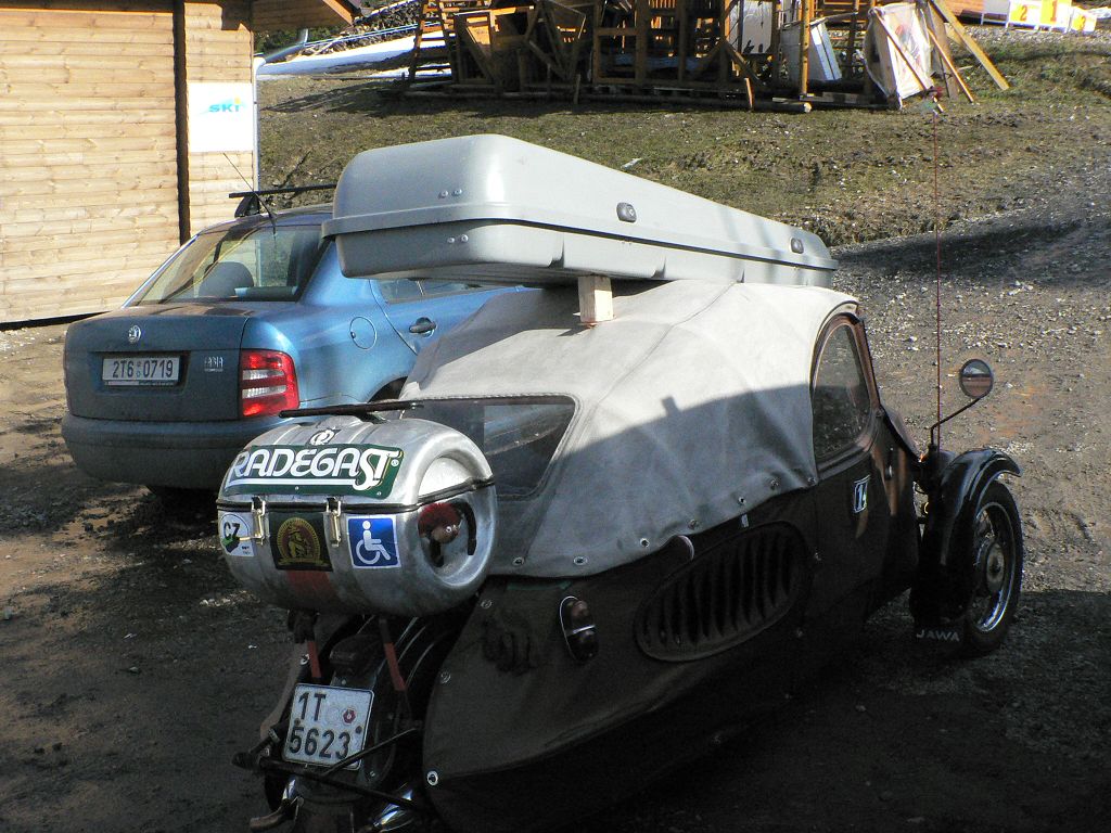 Pokud ten hadrak nemel vpredu ven z kapoty otvory pro nohy, tak s tim Horst nemohl jet.