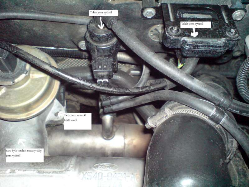 Tabi čau tak jsem to vyřešil.Co se dalo tak jsem vyčistil.Sání bylo strašně zanesený.Včera když jsem sundal hadici ze sání motor běžel normálně.Po vyčištění to hned chcíplo zahltilo se to vzduchem,tak soudím že byl problém vsání.Po vyčištění auto jede mnohem líp.Potom jsem zaslepil EGR ventil a funguje to auto líp jde za plynem a do otáček atd prostě mnohem lepší.Takže včerejší vypnutí turba při zaslepení EGR ventilu přisuzuju zacpanému sání.Přidávám fotku.Díky.Taky jsem přesvědčenej,že tu spotřebu 9litrů na 100km má nasvědomí taky zanesený sání,ale to ukáže a potvrdí nějakej ten kilometr.
