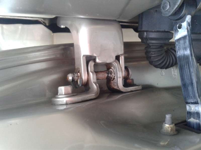 nesklepavej to, musi to byt dorazeny nadoraz, jsou tam drazky ktere to drzi uvnitr toho kloubu. jak to sklepnes, tak se to povoli jeste vic a bude ti to litat vsude mozne a propadavat. Lepsi je nechat si udelat tu osicku s vetsim prumerem od nejakeho strojare, aby ti sedla do toho vychrochtaneho otvoru. Anebo za bura vymenit u fordu za novy, vyber si