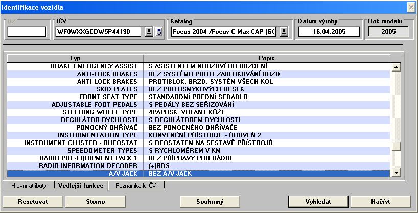 Dekódování VIN - čti důležité info str. 1, body 1 až 8 !