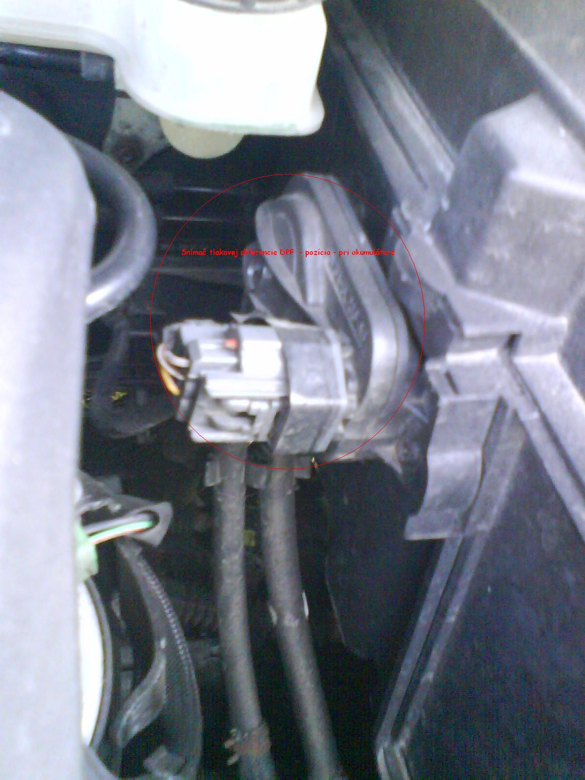 - Tretím indikátorom je snímač tlakovej diferencie pred a za DPF je umiestnený medzi akumulátorom a motorom Obr.2.