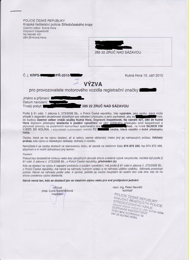 Re: Pozvánka na policii