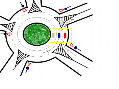 No nevim. Soubezna jizda by to byt nemela, protoze ten prijizdejici by se nemel nikdy dostat tak daleko, aby jel vedle auta, ktere chce sjizdet z kruhace a mel by mu dat prednost, takze pokud chce na ten kruhac najet, vzdycky musi dat prednost autu, ktere tam uz jede.