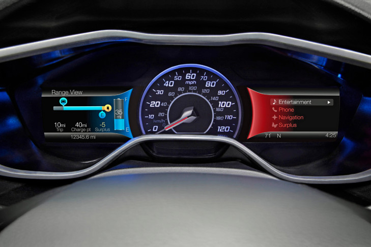 Součástí přístrojové desky Focusu Electric je nové uživatelské rozhraní nazvané SmartGauge, které vypočítává a zobrazuje aktuální dojezd na základě zbývající energie v akumulátoru, řidičského stylu a používání spotřebičů jako klimatizace či audio.