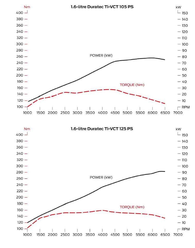 Verze 1: 1.6 Ti-VCT, 77 kW pri 6000 rpm, 150 nm pri 4000-4500 rpm