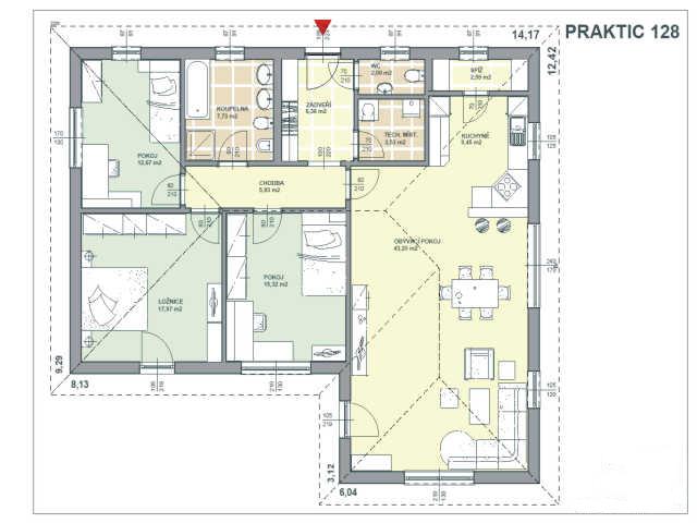 Možná bych se měl také rozepsat o půdorysu a probrat to s Váma :wink: Půdorys domu praktik 128 se nám zalíbil jeho jednoduchostí. Žádné zbytečné chodby, rohy atp.