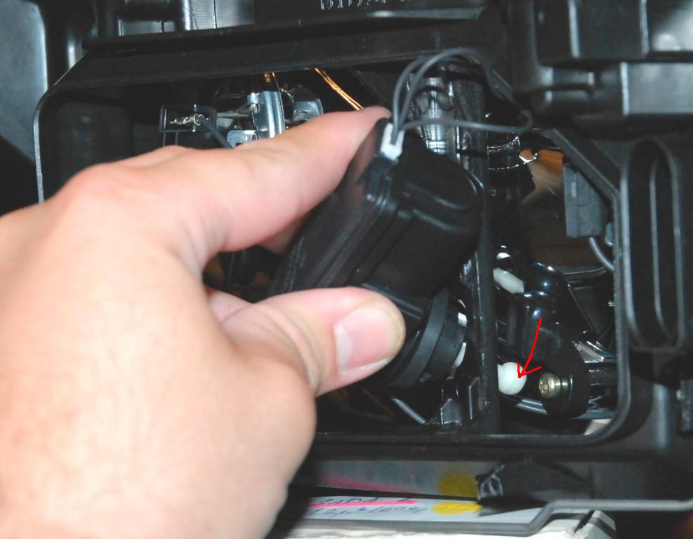 a) Motorek se demontuje velice jednoduše. Je na bajonet a ve správné poloze je kolmo nahoru. Otočíš s ním doprava cca o 45° a povytáhneš ven z lampy. Tím taky sklopíš parabolu směrem dolů. Stále ti to drží kuličkou k parabole. Nervat! ale naklonit motorek kuličkou co nejvíce dolů tak aby se kulička z uložení vysmekla. Raději si světlo vytáhni z auta - po hmetu to nepochopíš a hlvně asi nedáš zpět. Teda mě by se to asi nepovedlo.
