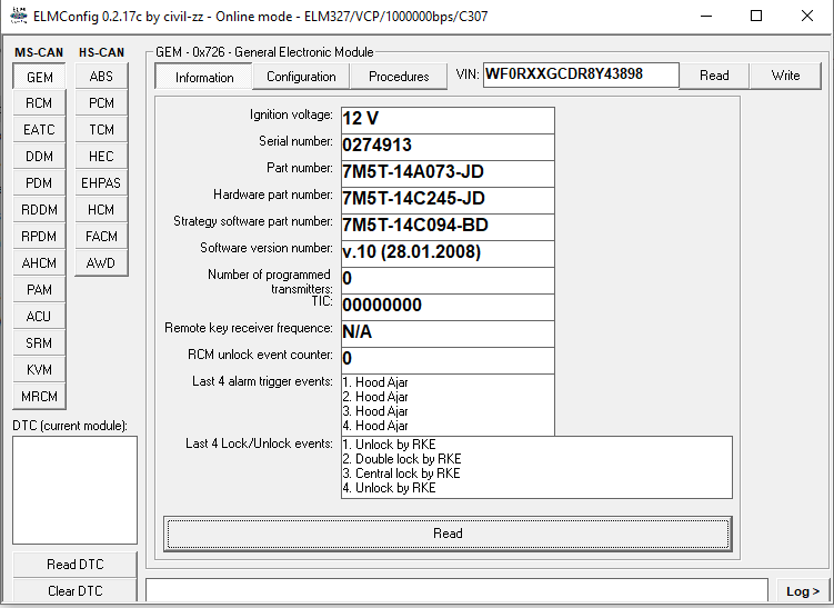 Isiel som cez Forscan. IC v pohode. GEM mu nesedi pocet blokov. ABS vypise Writing blocks failed - incompatible configuration. ABS modul ma v konfigu 2WD. Tam by to chcelo 4WD...