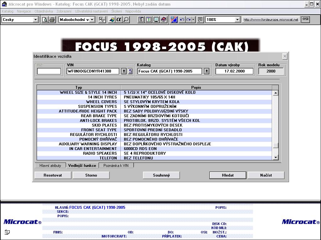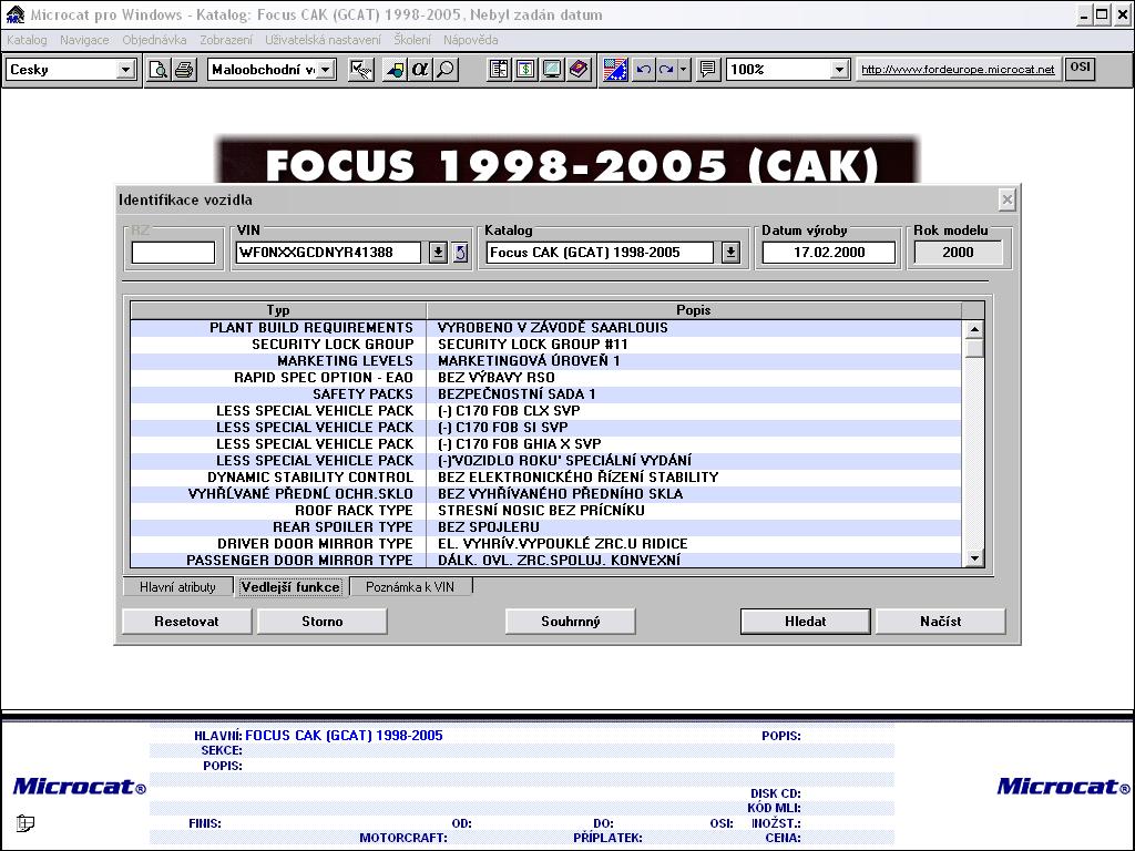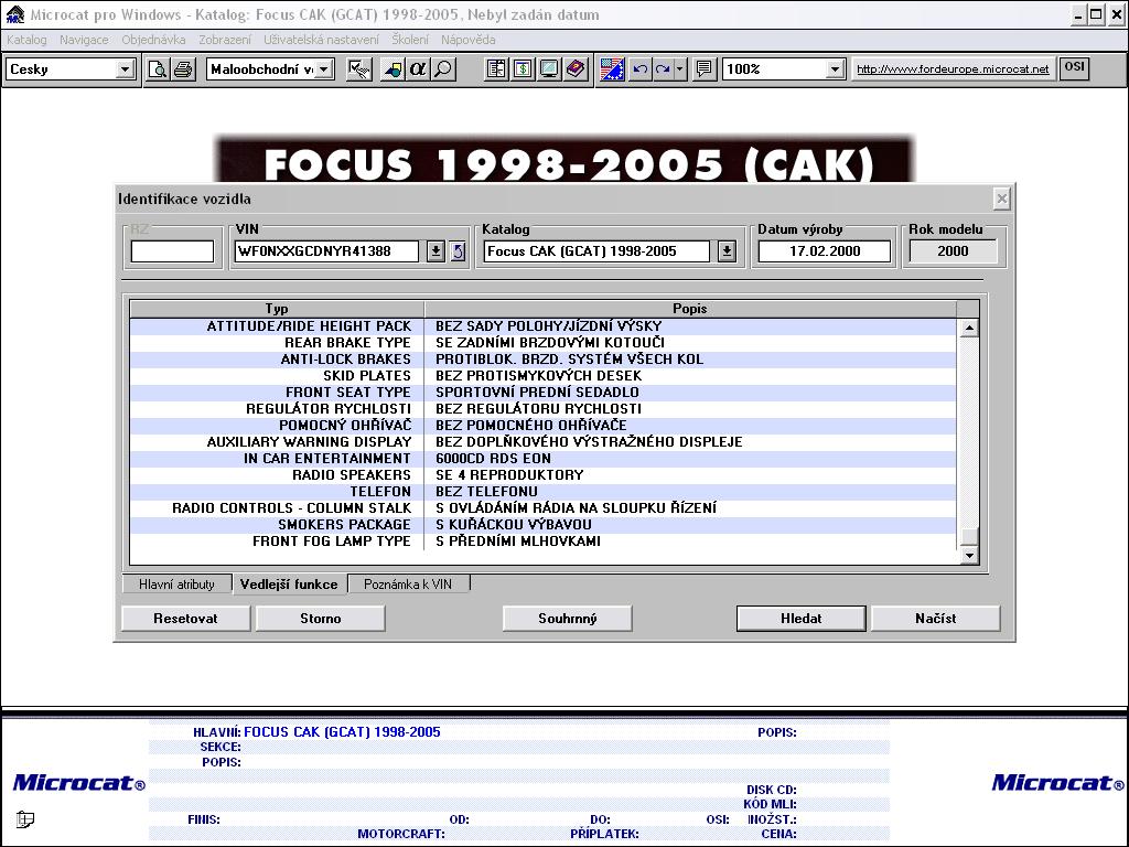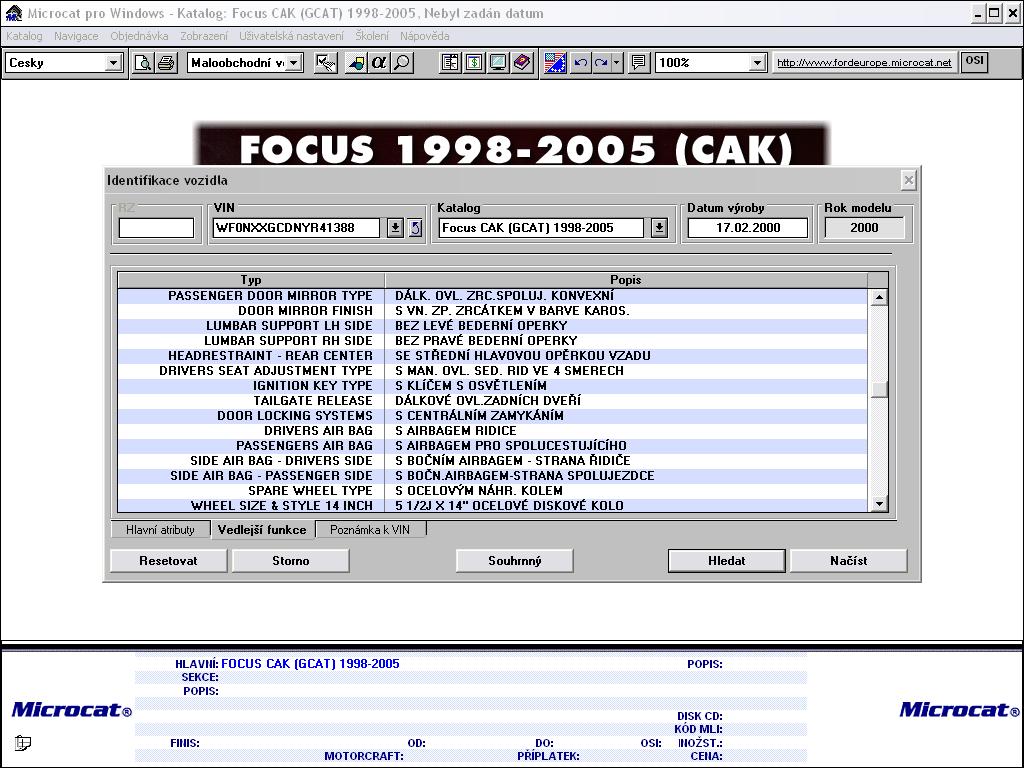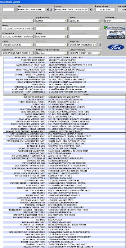 Jestli taky muzu pozadat o dekodovani VIN meho FoFo - kvuli jednomu autu nehodlam stahovat Microcat. Podle VIN dekoderu na webu akorat vim, ze vyroba Saarlouis 12/2005.