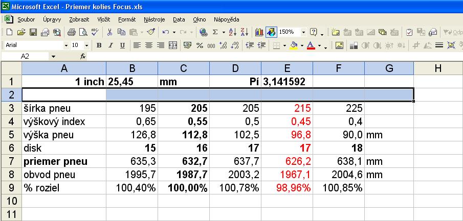 stale sa nemozem vzdat myslienky ze ak by som kupoval 17ky preco sa ochudobnit o 10 mm sirky pneumatiky, tak som zostrojil taku tabulecku pre Fofo II je to az taky velky rozdiel to 1% ked 18ky maju oproti 16kam 0,9% navyse...