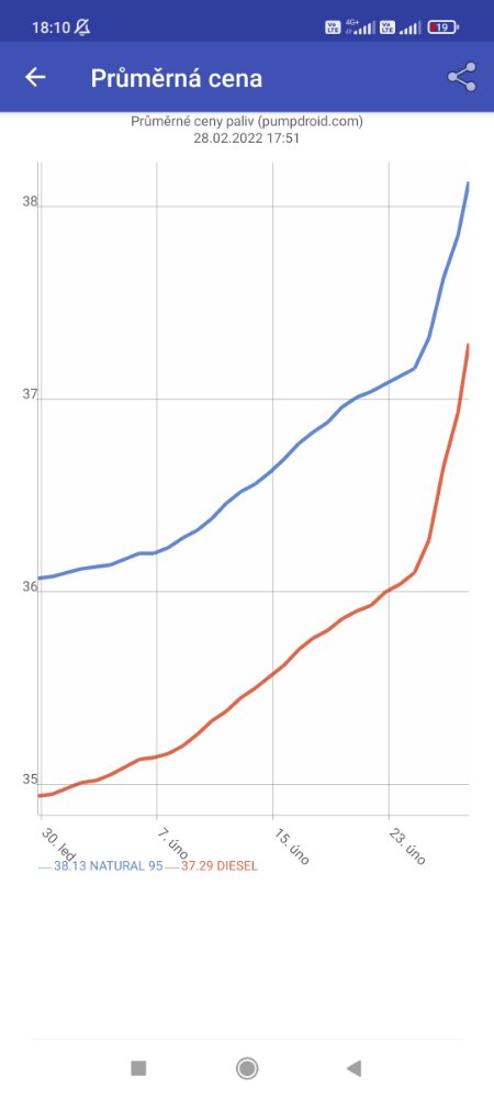 No pekne to roste, zatim koukam drzi ONO ale to bude spis tim, ze ceny meni systematicky 1x za tyden? V Liberci je jeste pod 40 Makro, Globus uz nad. Masakr, ja vedel, proc jsem si k vanocum koupil elektrokolo...