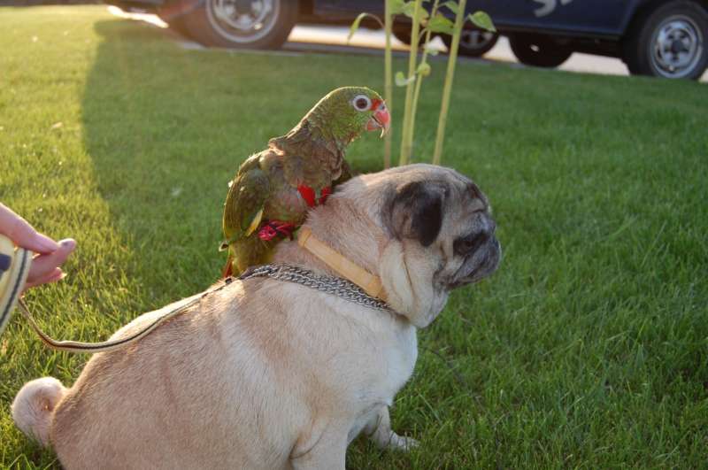 No nám se třeba snáší kočka a papoušek docela dobře. Sem tam si sice ddelaji neco naschval, jako klovnuti do ocasu a naopak rozhozeni letu skokem s mlasknuti tlapkou, ale jinak zadnej problem.