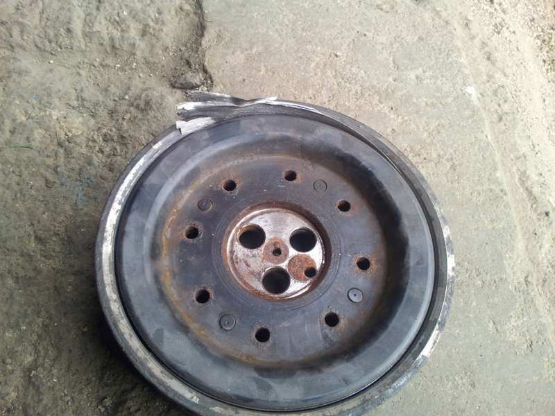 A zde přikládám obrázek původní řemenice, kterou jsem tam dal jen prozatím. Zezačátku dobrý, ale po 50 km to začlo dělat hrozný pazvuky, tak jsem s tím dál nejezdil a čekal na vyřešení reklamace a tohle na mě dneska juklo