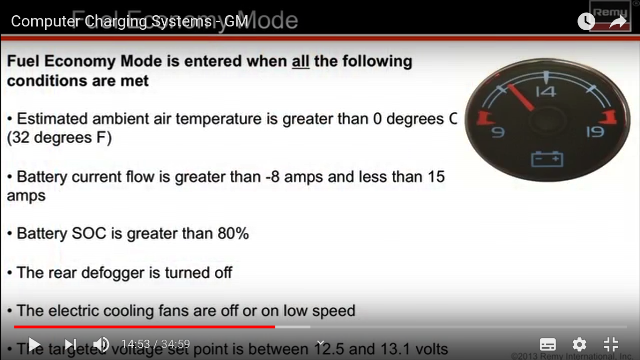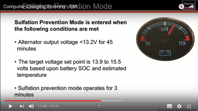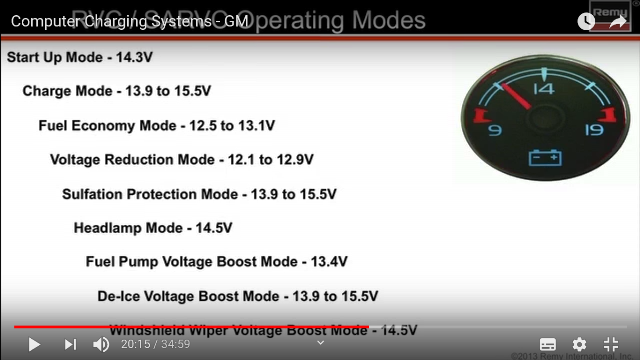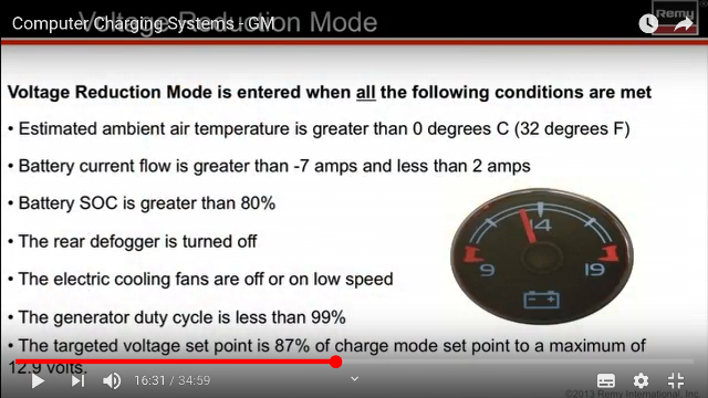 Jisté ale je, že nabíjení probíhá tak, že baterie je udržována na minimálním možném napětí, stanoveném na 12,1V, což je stav nenabité baterie a alternátor dobíjí teprve, když jsou splněny předem dané podmínky.
