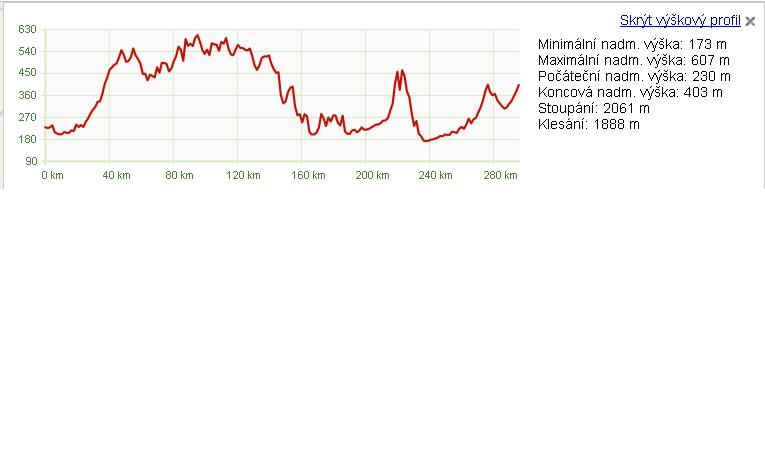 300 km, většinou silnice 1. třídy, nějaké města (Ždár n/S, Brno) a vesnice