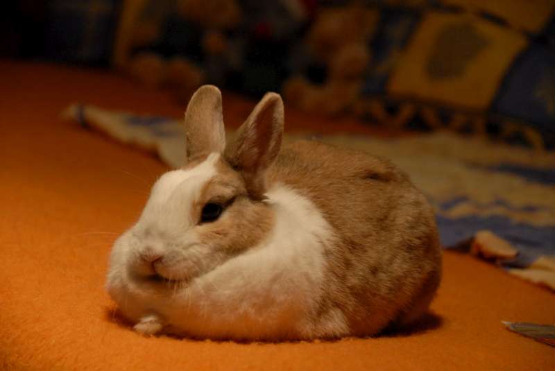 Nicméně zakrslá fakt je, páč má 1,5 kg. To náš první zajíc byl zakrslej, kterej trochu překrsnul...cca na 2,5 kg, ale hodně nabral po kastraci. Tahle je vážně malá koule.